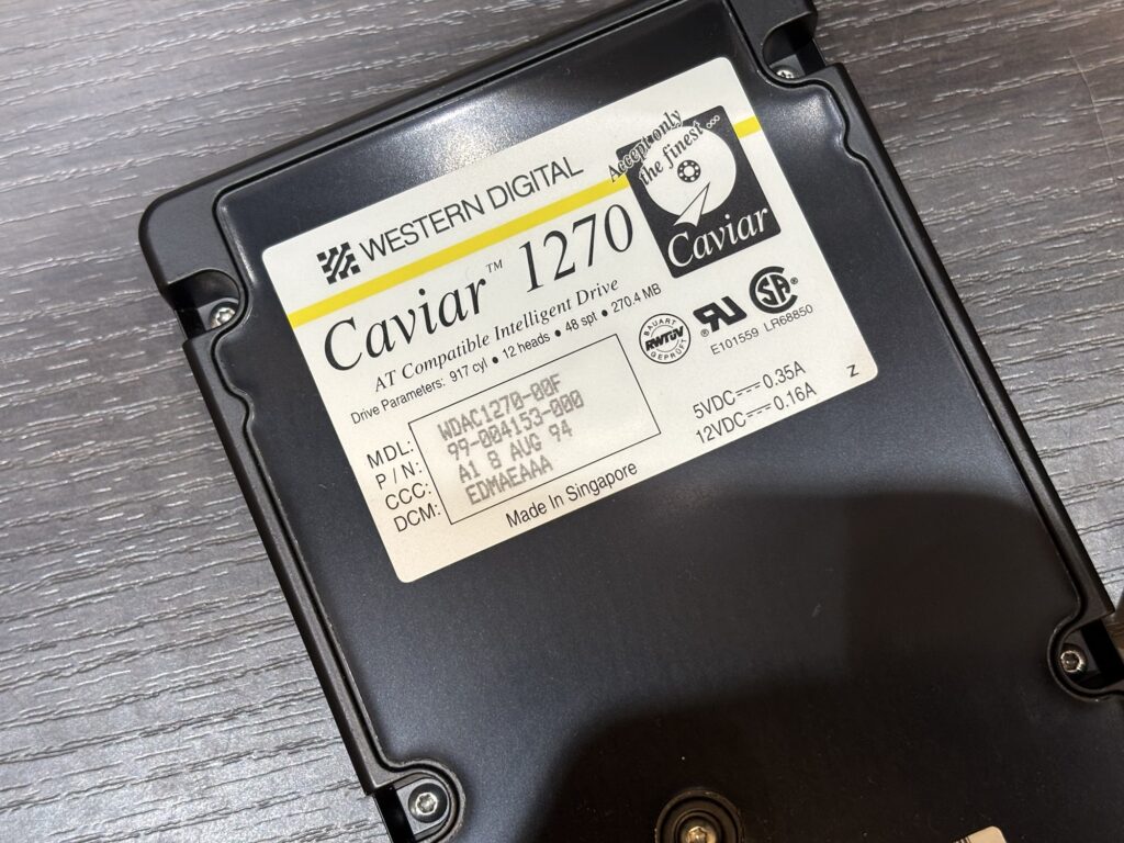 Western Digital製のCaviar 1270。270MBのHDD。99年製なのかな?